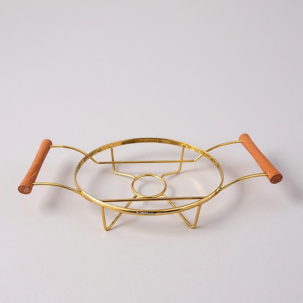 Mid Century Modern Oval Chaffing Dish, Gold Metal and Wood Handles
