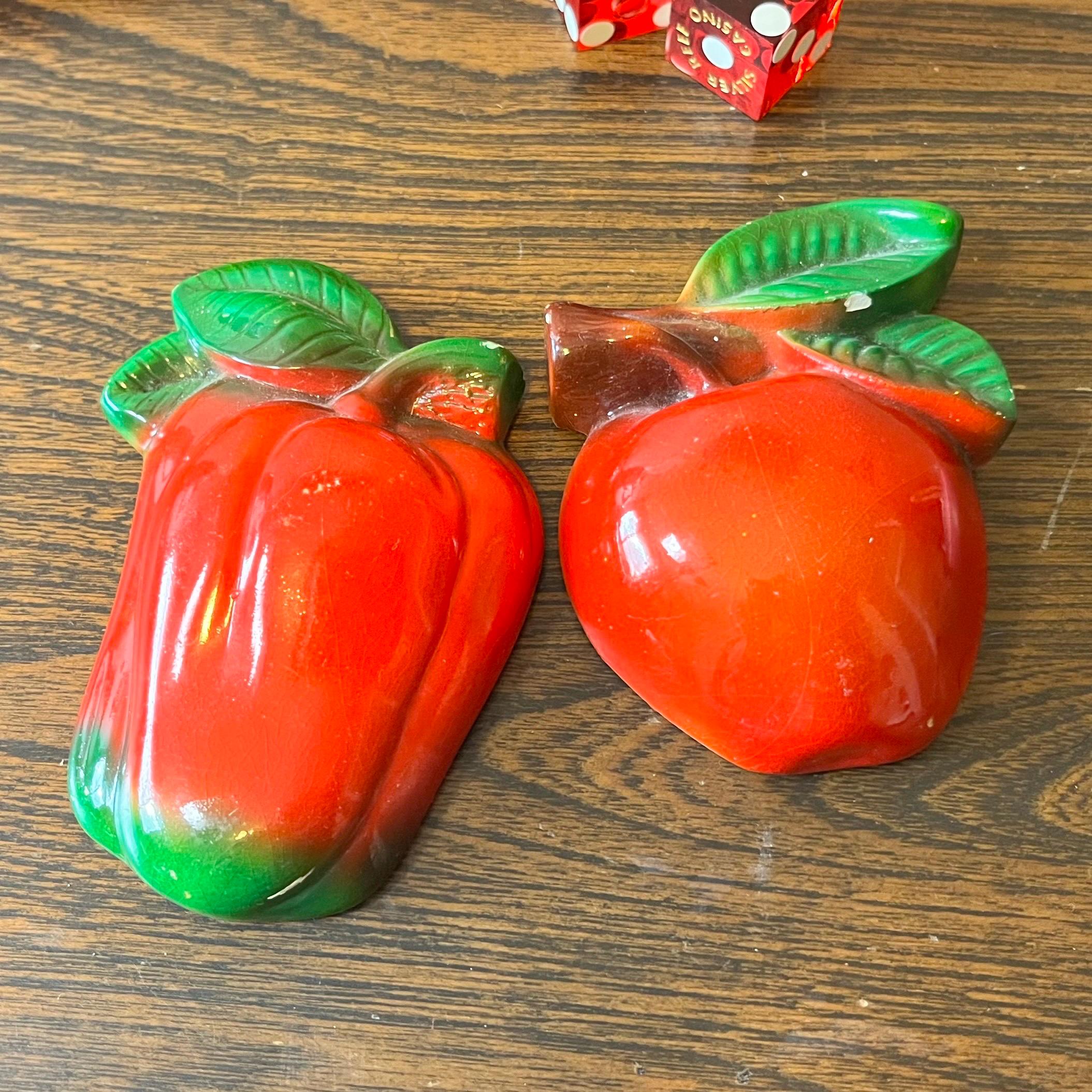 Vintage Apple and Pepper chalk ware pair 🍎 🫑